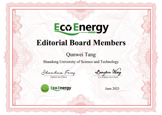 近日,我院唐群委教授受聘担任国际期刊《EcoEnergy》编委。
