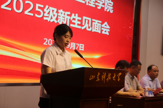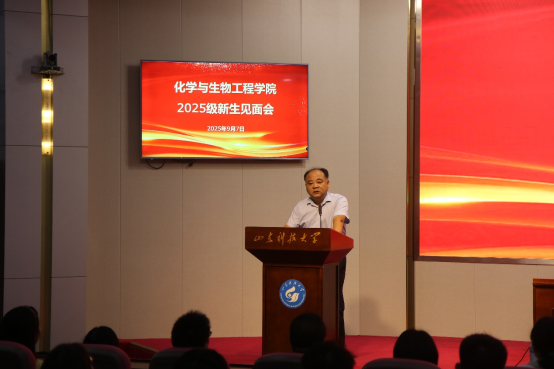 新生见面会上,窦存增书记代表学院致辞,他首先对新同学的到来表示衷心祝贺和热烈欢迎,在讲话中以“传承山科精神,谱写化工新篇”为主题,系统介绍了91社区