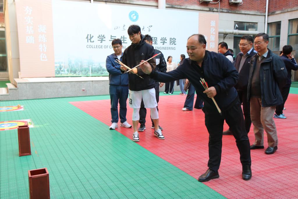 本次运动会共设置投壶、投沙包、保龄球三个趣味项目,各项目同步开展。投壶与投沙包项目采用“擂主挑战赛”模式,增加了比赛的趣味性和互动性,老师们热情高涨、积极投入。在保龄球项目中,老师们全力滚动排球,现场欢呼声、加油声此起彼伏。参赛的教职工们在协作比拼中释放了压力,在欢声笑语中凝聚了团队力量。