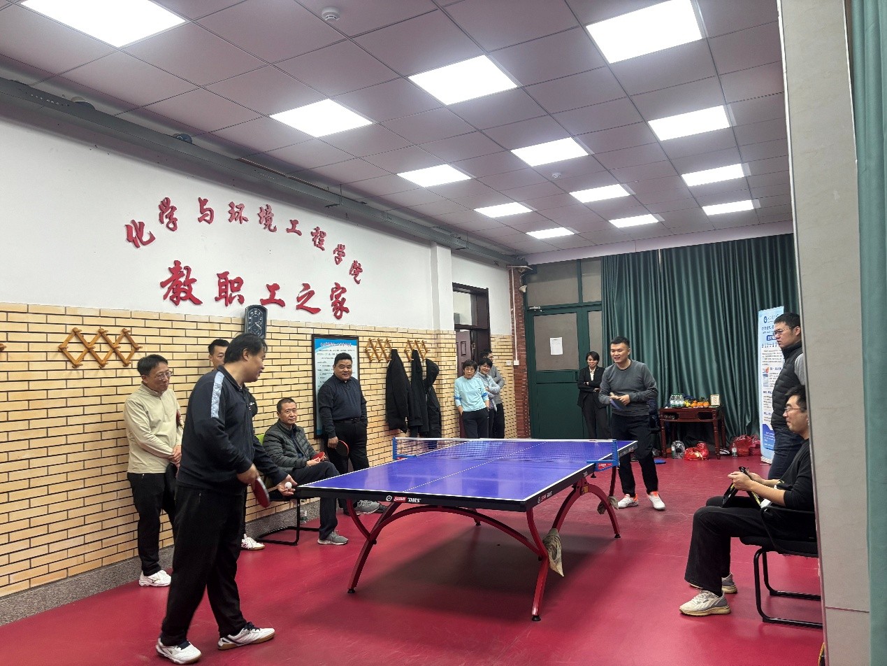 工会在教工之家举办2025年教职工乒乓球比赛。比赛以“爱‘乒’才会赢,你来你也行;‘乒’出你风采,展现化院情”为主题,吸引了学院机关、应化系、生工系、化工系和实验中心五支队伍踊跃参与。