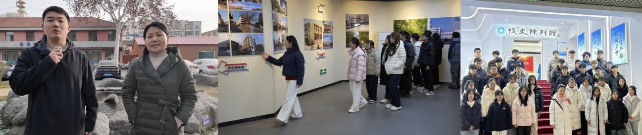 经过充分准备,三校区同上一堂思政课的创新实践火热开启。首先,易凡以简单的新年问候开篇,随后,三校区师生百余人跟随济南校区主讲老师卓国梁、贺建芹漫步校园的镜头,以“文脉赓续”为线索,“云逛”济南校区。两位老师时而缓步漫谈,时而驻足介绍,时而回顾校史,让泰安、青岛校区的同学对济南校区有了较为全面的了解。接着,镜头切换至泰安校区,主讲老师杨文园带领师生走进泰安校区校史馆,一帧帧老照片记录建校初期历程,一件件旧教具承载育人初心,校史底蕴与山科校训深度交融,让师生深刻体悟到了“坚韧不拔、奋发图强”的科大精神;接下来,视角转入素有“江北最美校园”美誉的青岛校区,易凡带领师生走进校史馆,由专业讲解员向大家介绍我校在“两校并立融合、山东煤矿学院、山东矿业学院、91社区