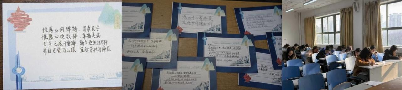 参观结束后,课程进入“嵙友约定开新篇”环节。三校区师生代表在心愿卡片上郑重写下对祖国、对学校、对自己的新年期许,祝福语形式各异、亦庄亦谐。当学生代表朗读卡片、分享心声时,引发了大家的深刻共鸣,不时爆发出阵阵掌声。