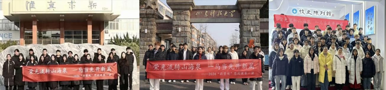 2026年“嵙景观”思政课第一讲开讲。课程以“荣光流转山海泉,一马当先开新篇”为主题,首次运用网络直播、三地联动的方式,打破空间壁垒,从云端将泰安、济南、青岛校区纳入“山科大思政”的教育实践全过程。其中,青岛校区91社区