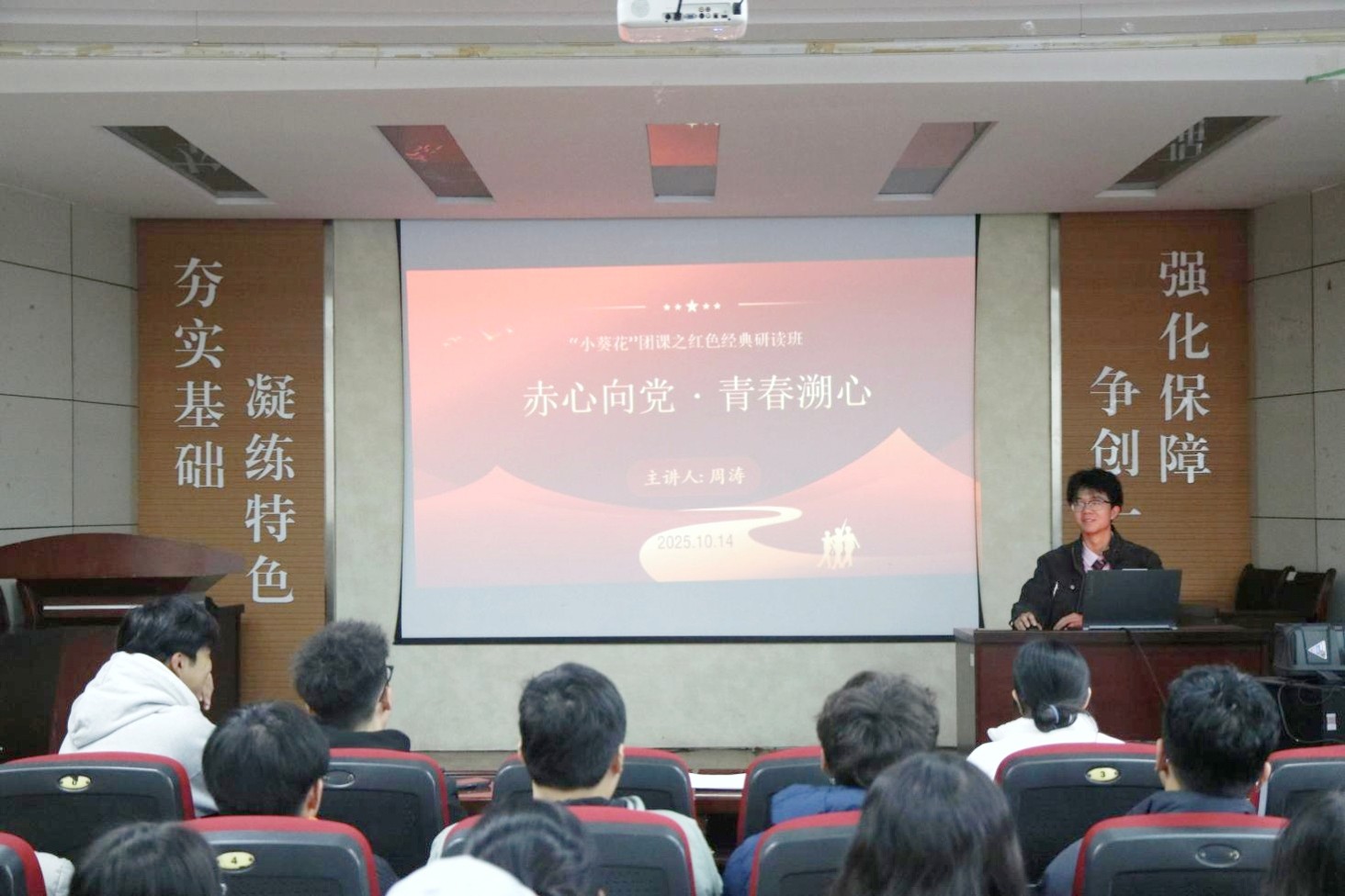 “小葵花”主题团课之红色经典研读班第三讲在J2-104开讲,此次团课的主题为“赤心向党·青春溯心”,由91社区
